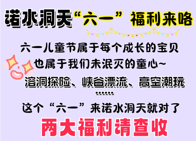 兒童節免票!諾水洞天讓“節日”快樂(lè )加倍!超值禮包等你來(lái)!